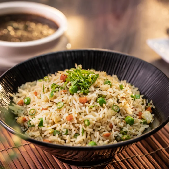 It starts with the rice itself. We use long-grain rice that is cooked and cooled before it ever touches the pan. This step keeps the grains separate and avoids the stickiness that ruins a good fried rice dish. Once it hits the heat, things move quickly. A little oil, just enough to coat the pan, followed by chopped vegetables, garlic, and sometimes egg, brings everything to life. The heat is high, and the timing is tight. Everything must cook fast so it stays fresh, crisp, and full of flavor.
